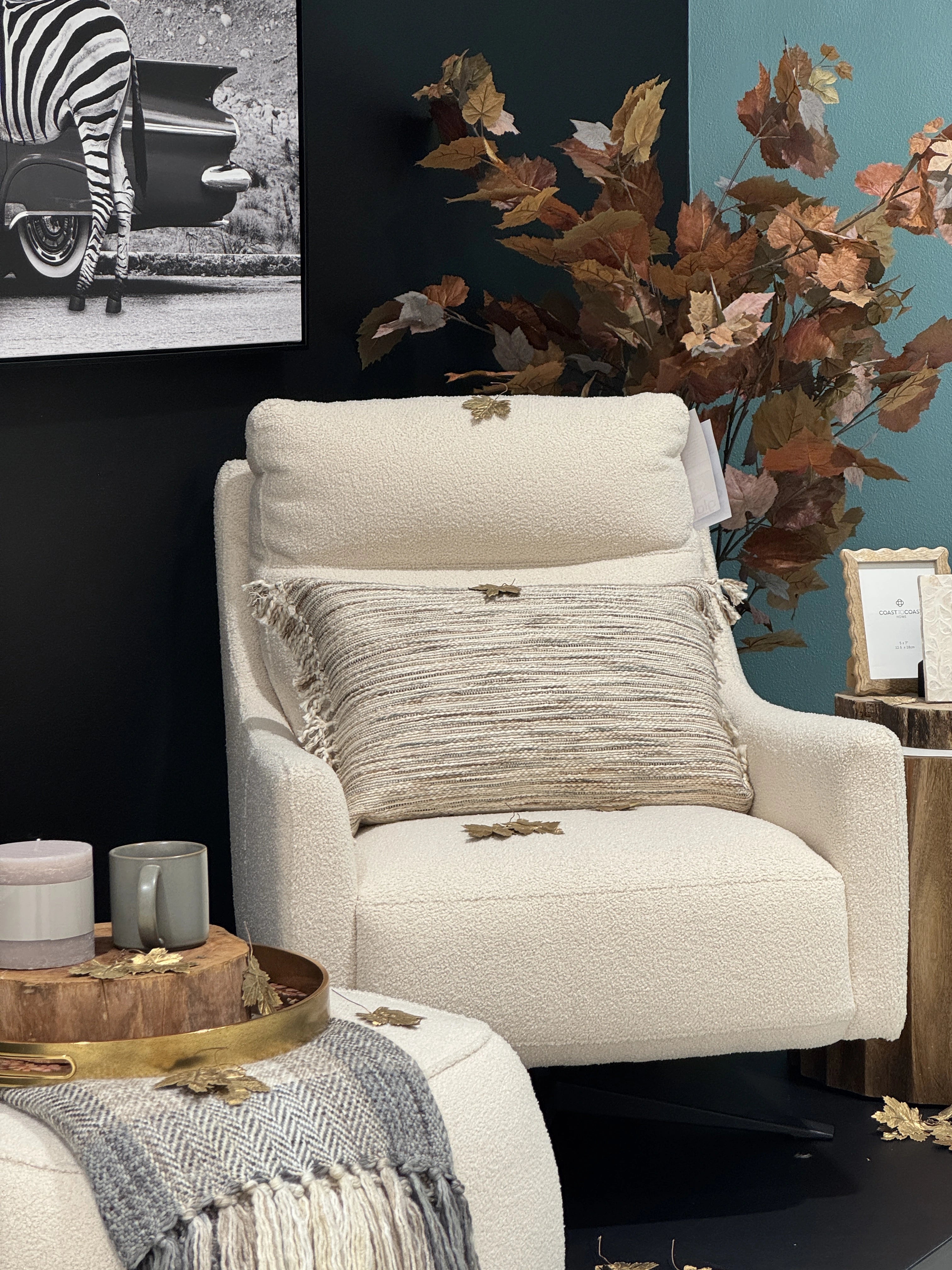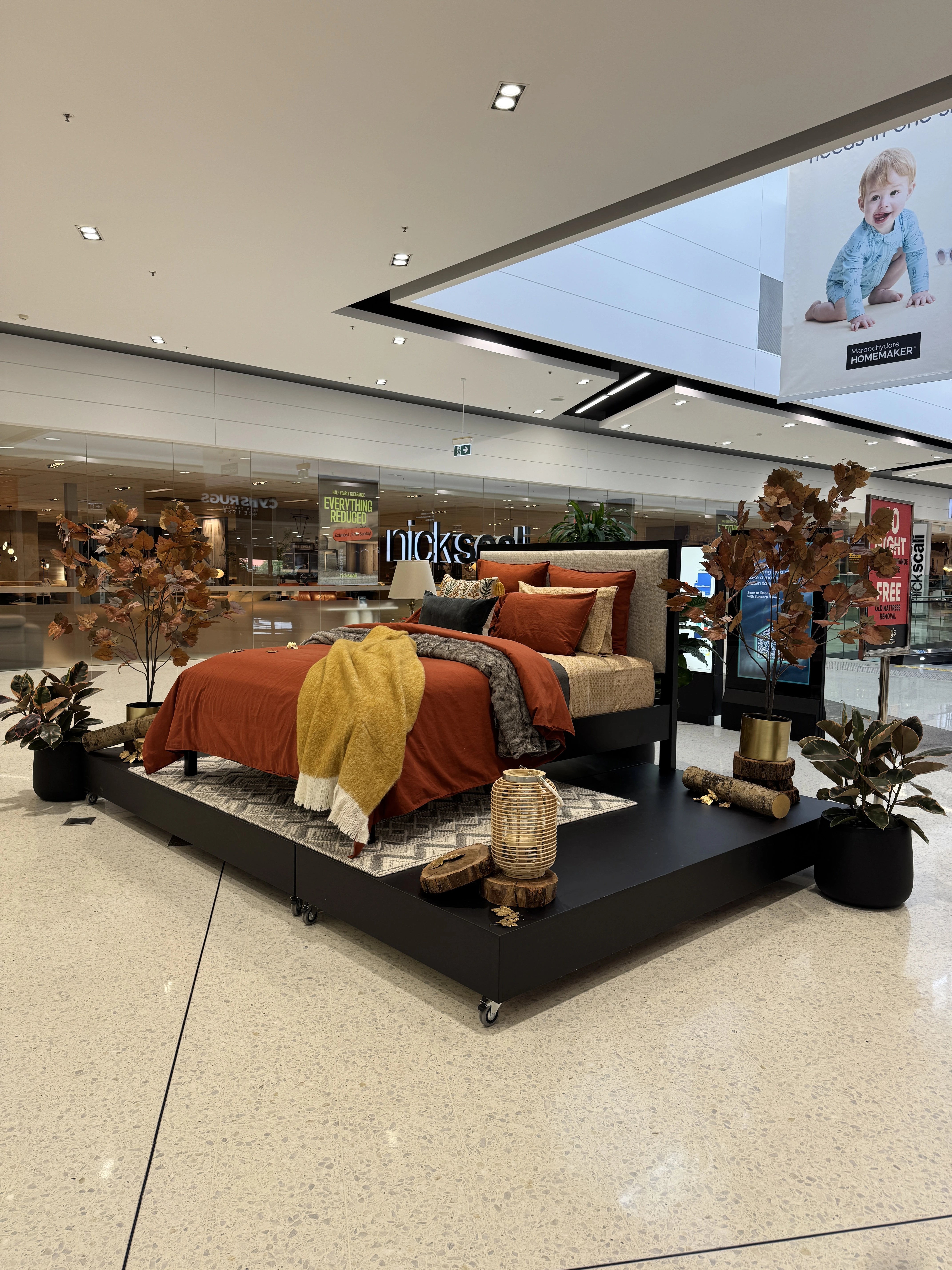 This visual merchandising display was designed to evoke comfort and warmth while showcasing the collection in a cohesive, elevated winter narrative.