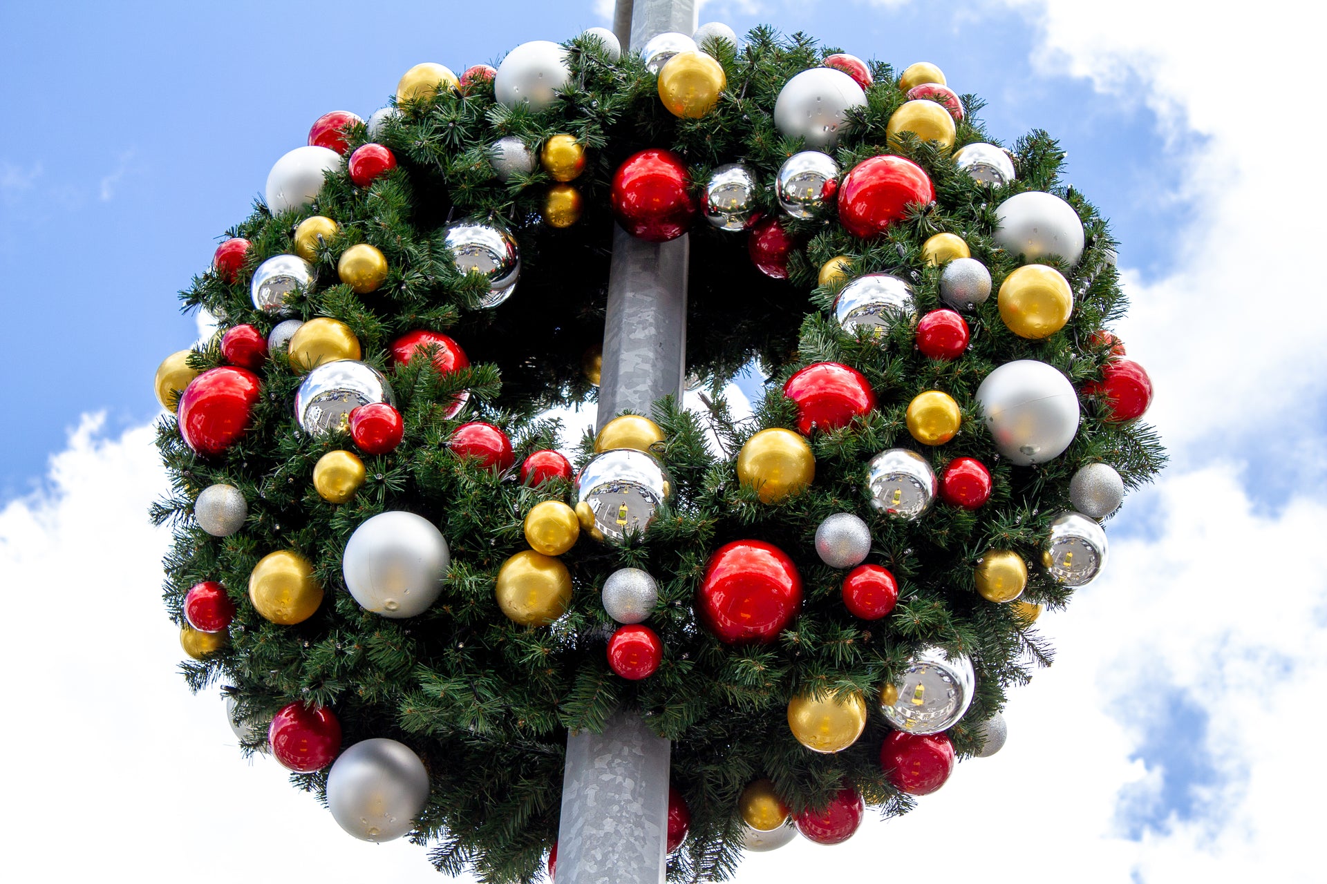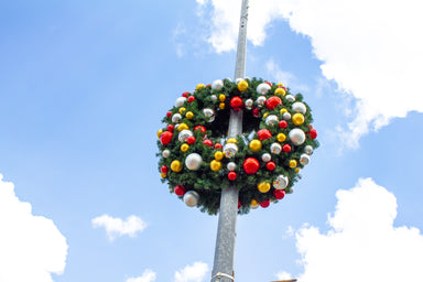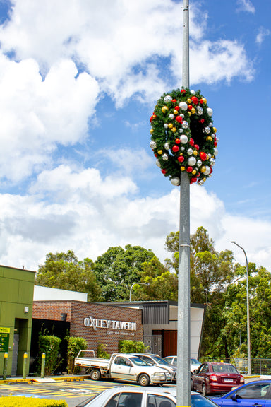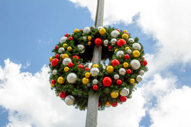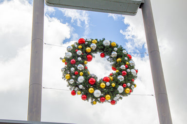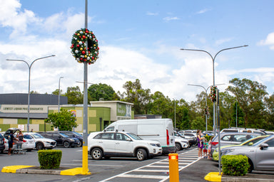 Enhance your car park this holiday season with traditional outdoor Christmas wreaths, adding festive charm to the exterior of your building.