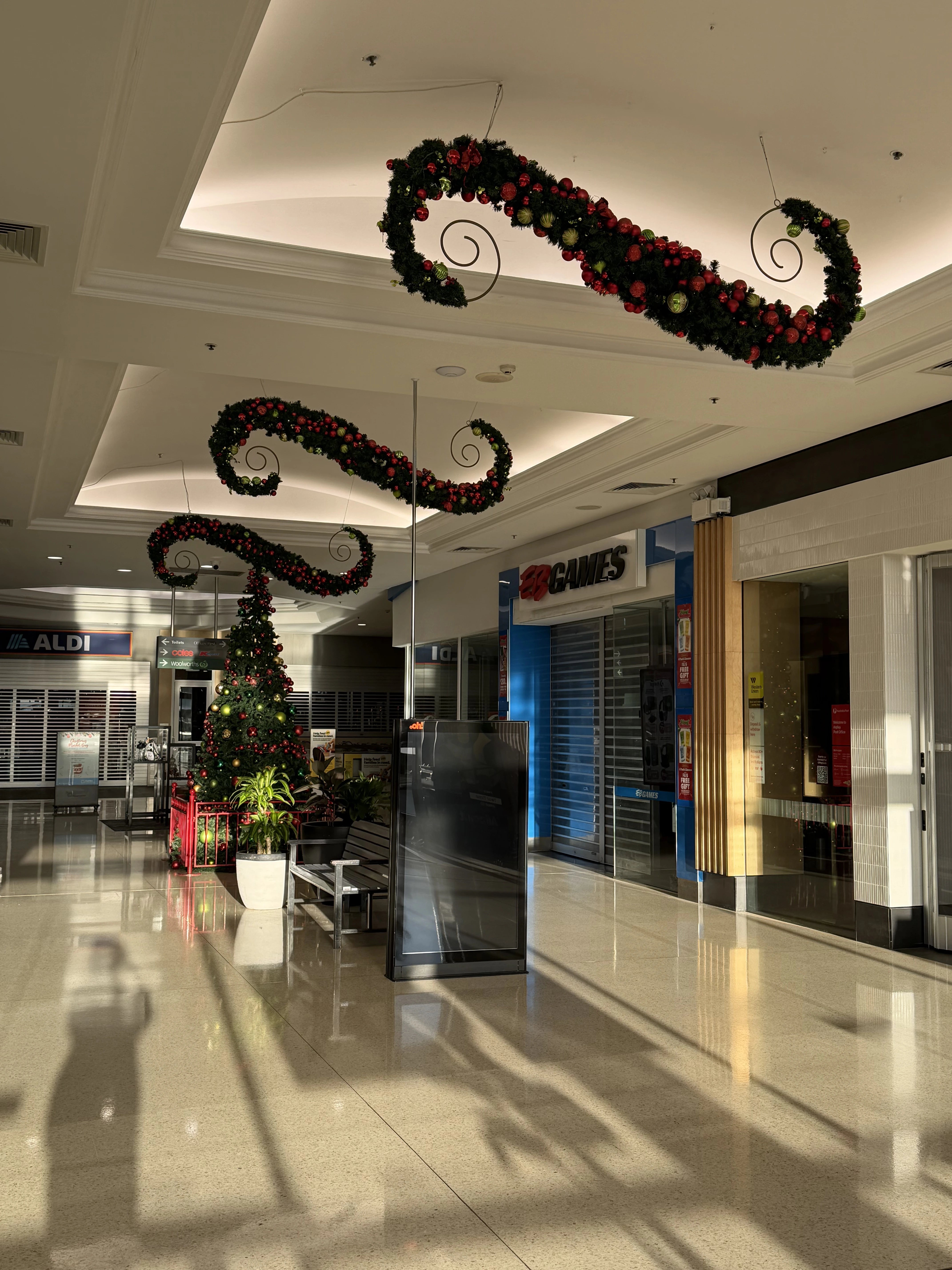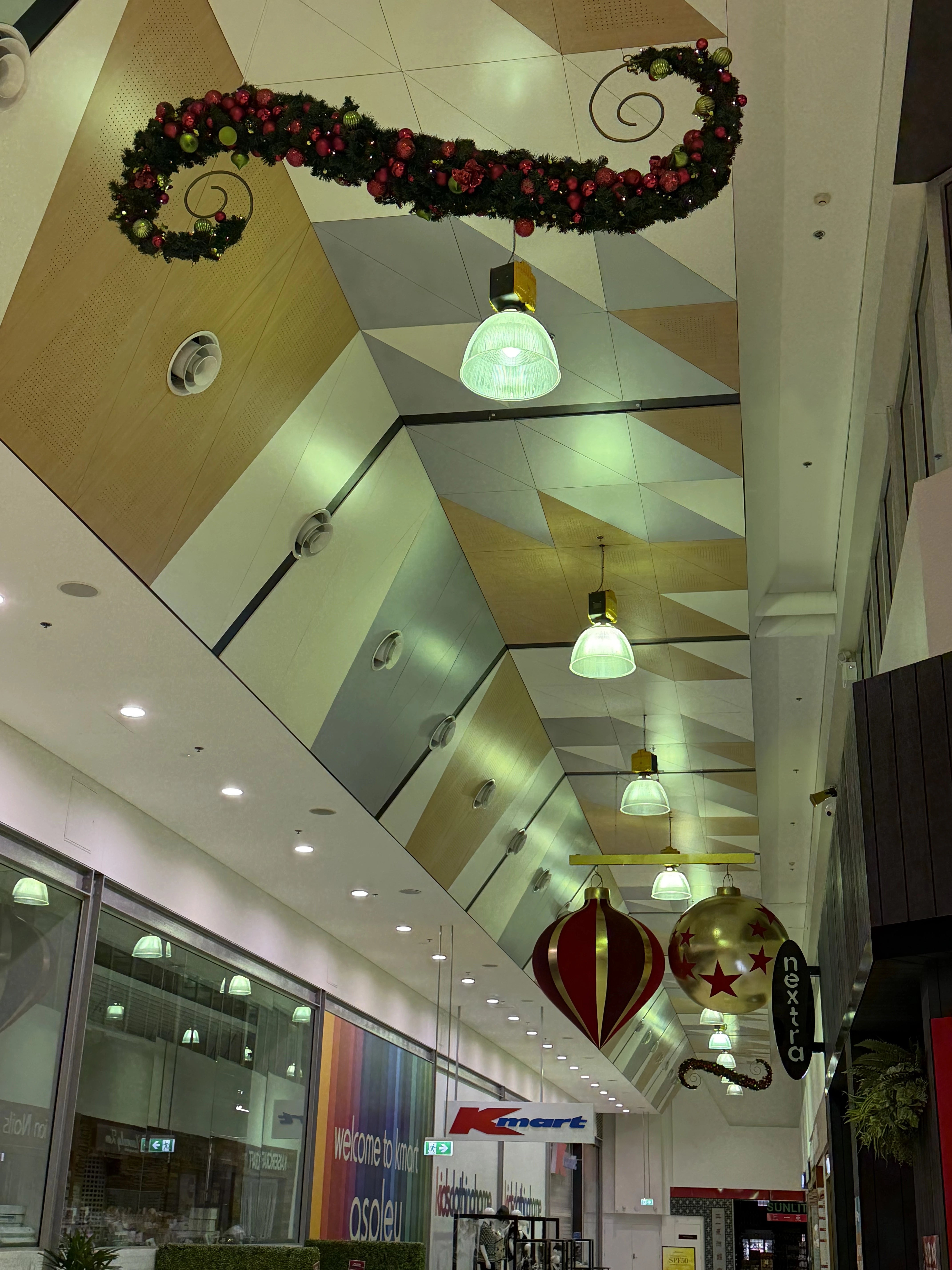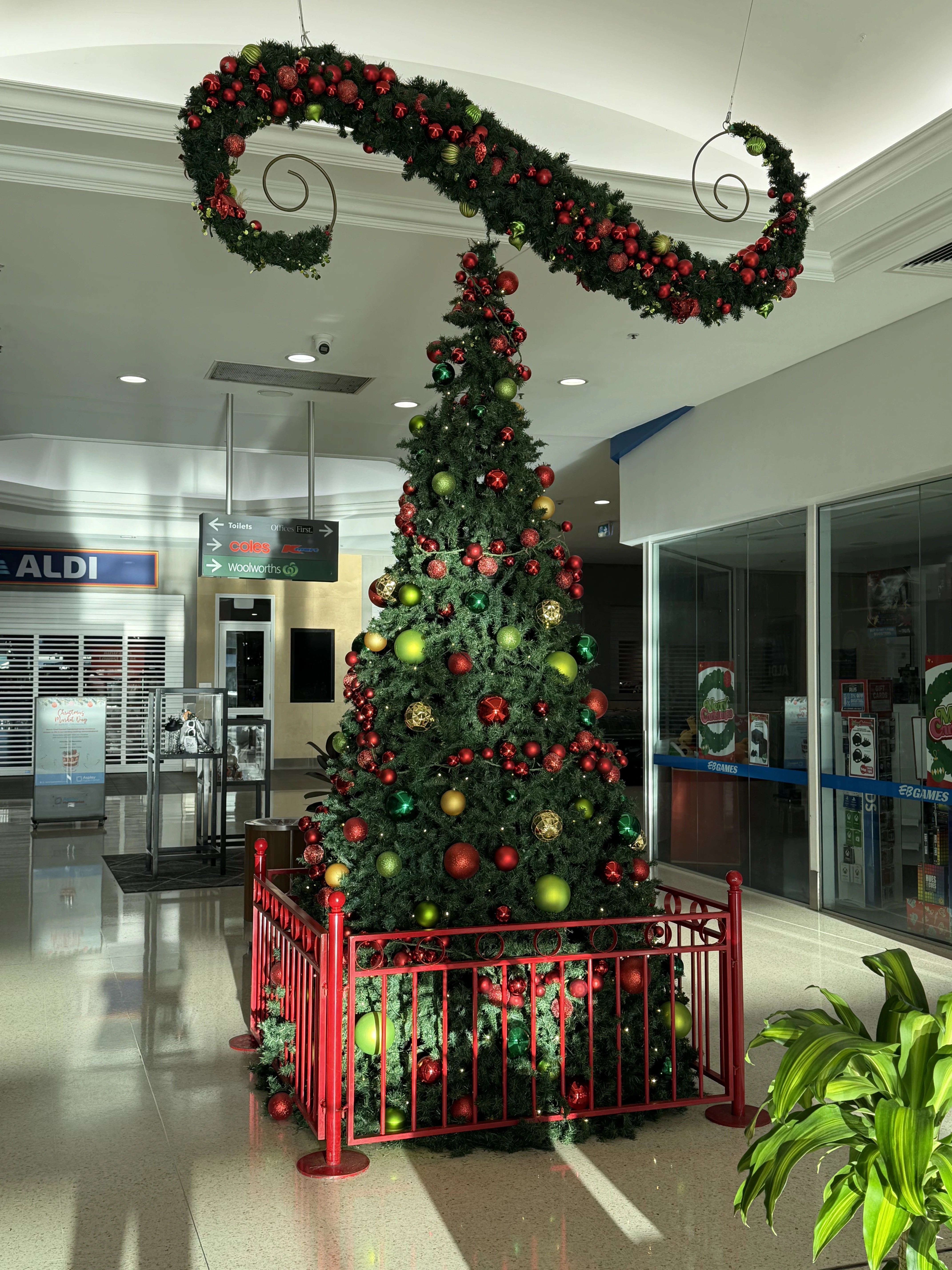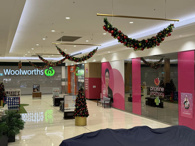 A large-scale Christmas installation was delivered throughout the centre, using suspended garlands, oversized ornaments and feature trees to create strong festive impact across key circulation spaces.