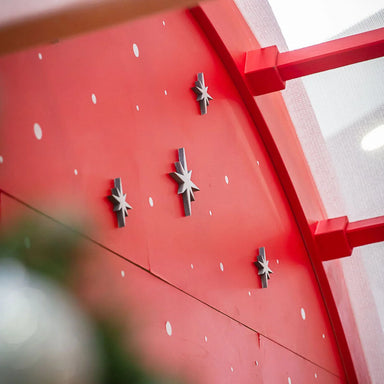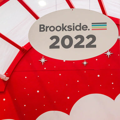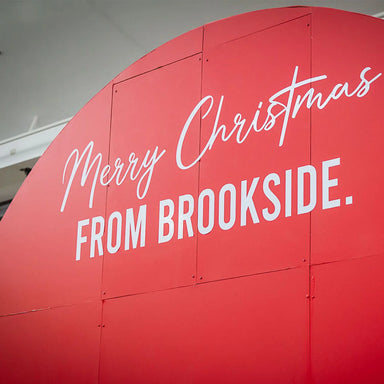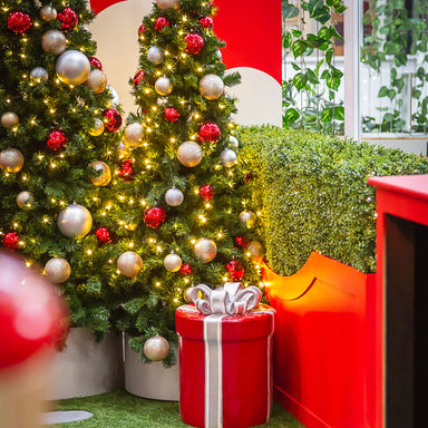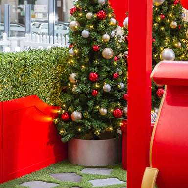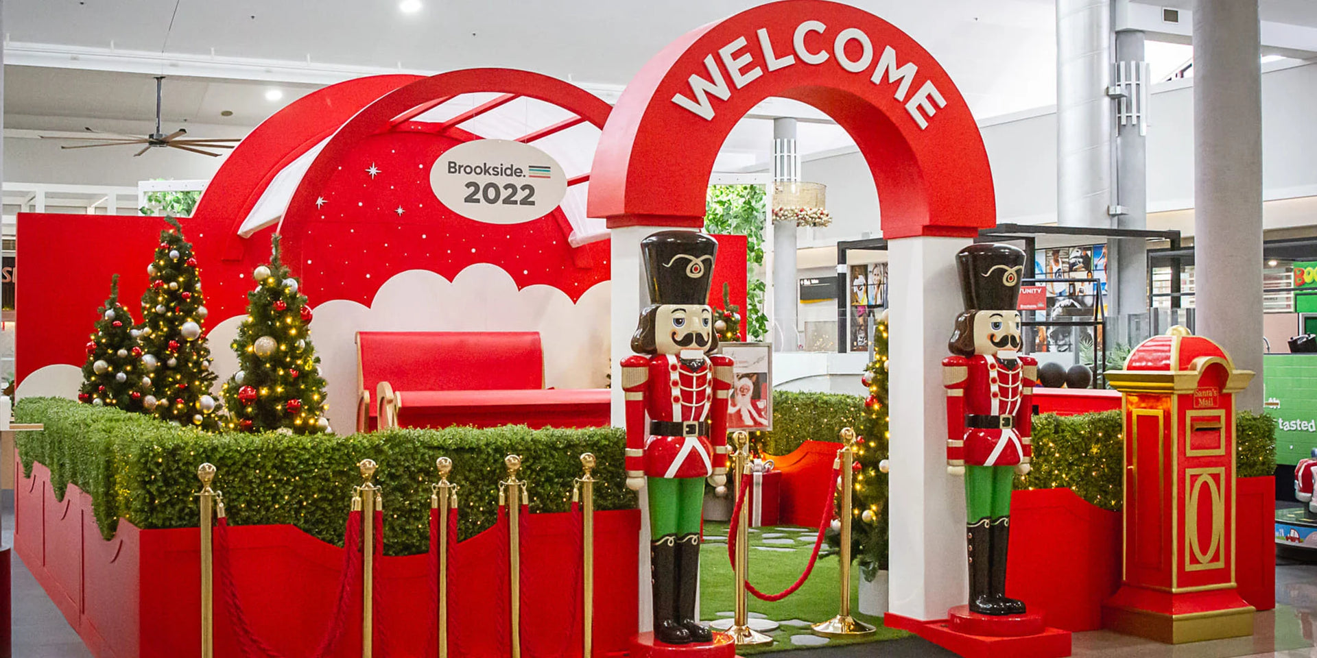The Brookside Shopping Centre Santa Set is adorned in festive reds and golds, creating a warm and welcoming holiday scene.
