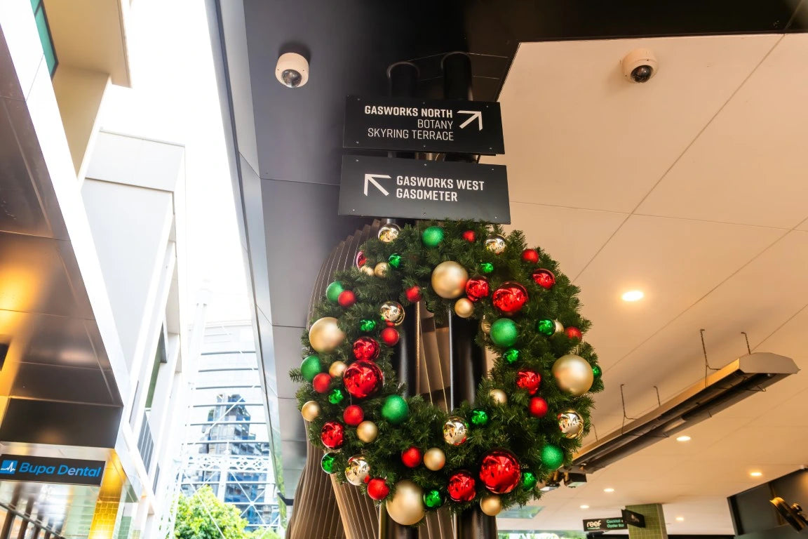 A coordinated Christmas installation was rolled out across Gasworks Plaza, layering classic festive elements throughout both indoor and outdoor spaces to create a cohesive and welcoming seasonal atmosphere.