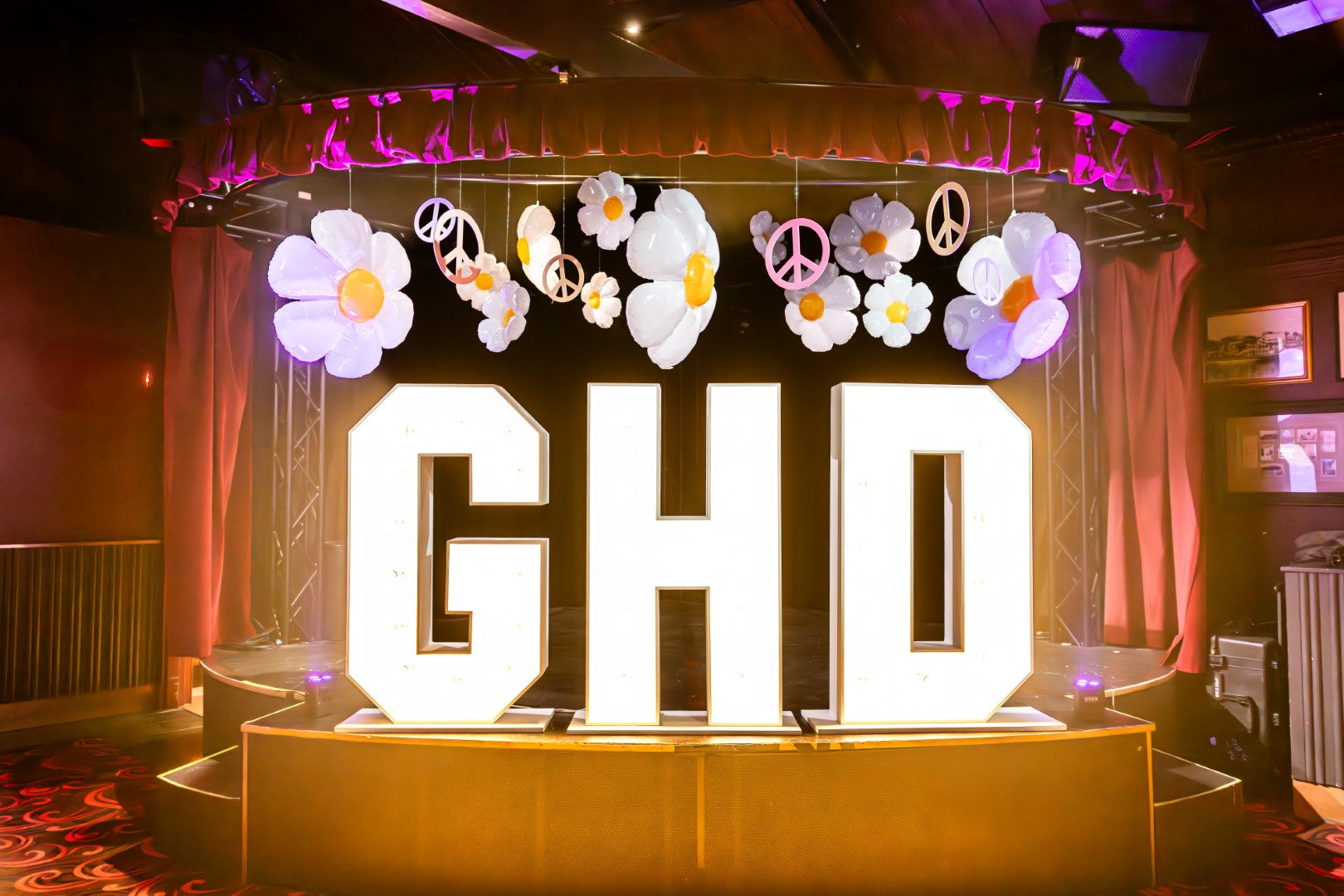 Step back into the groovy ’60s with our Woodstock-inspired cocktail party design, featuring vintage VW campervans, vibrant flower power decor, and iconic peace symbols.