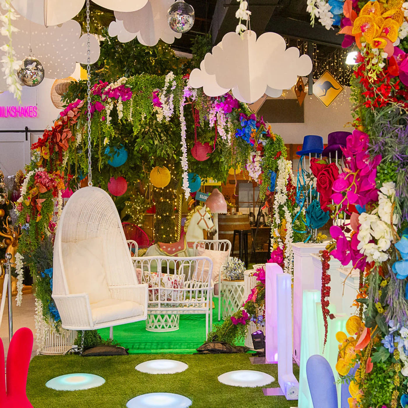 From an enchanted garden to candelabra centrepieces, life sized horses and giant popcorn boxes. Our showroom is a place where you can sit under a cherry blossom tree and plan your next party.